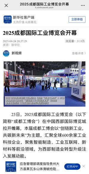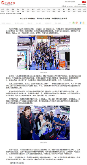2025年4月25日,第四届成都国际工业博览会(以下简称“成都工博会”)在中国西部国际博览城圆满落下帷幕。紧扣生产力现代化,瞄准未来产业布局,为期三天的成都工博会以“创链新工业,共碳新未来”为全新主题,精心策划六大主题展区,涵盖工业自动化、数控机床与金属加工、机器人、新一代信息技术与应用、节能与工业配套及新材料等领域,特设四川工业链博馆。近60,000平方米的展示空间内,618家中外企业齐聚一堂,迎来观众49,105人次。