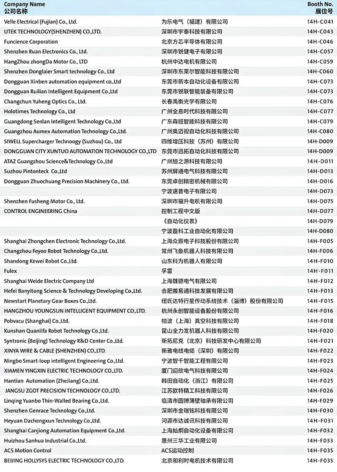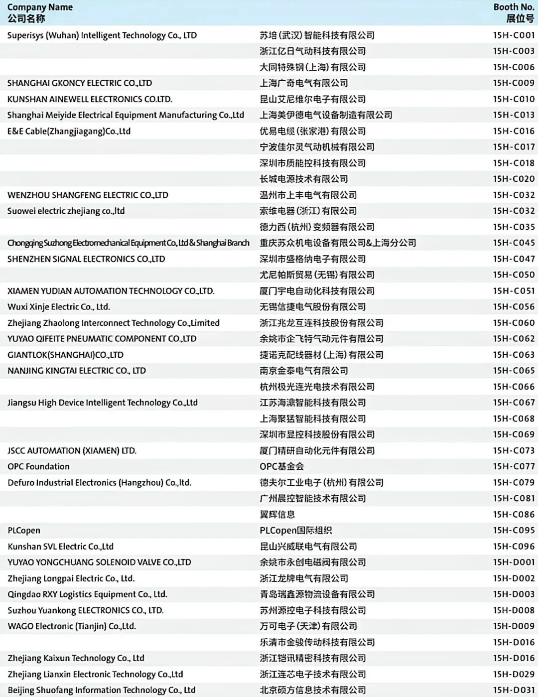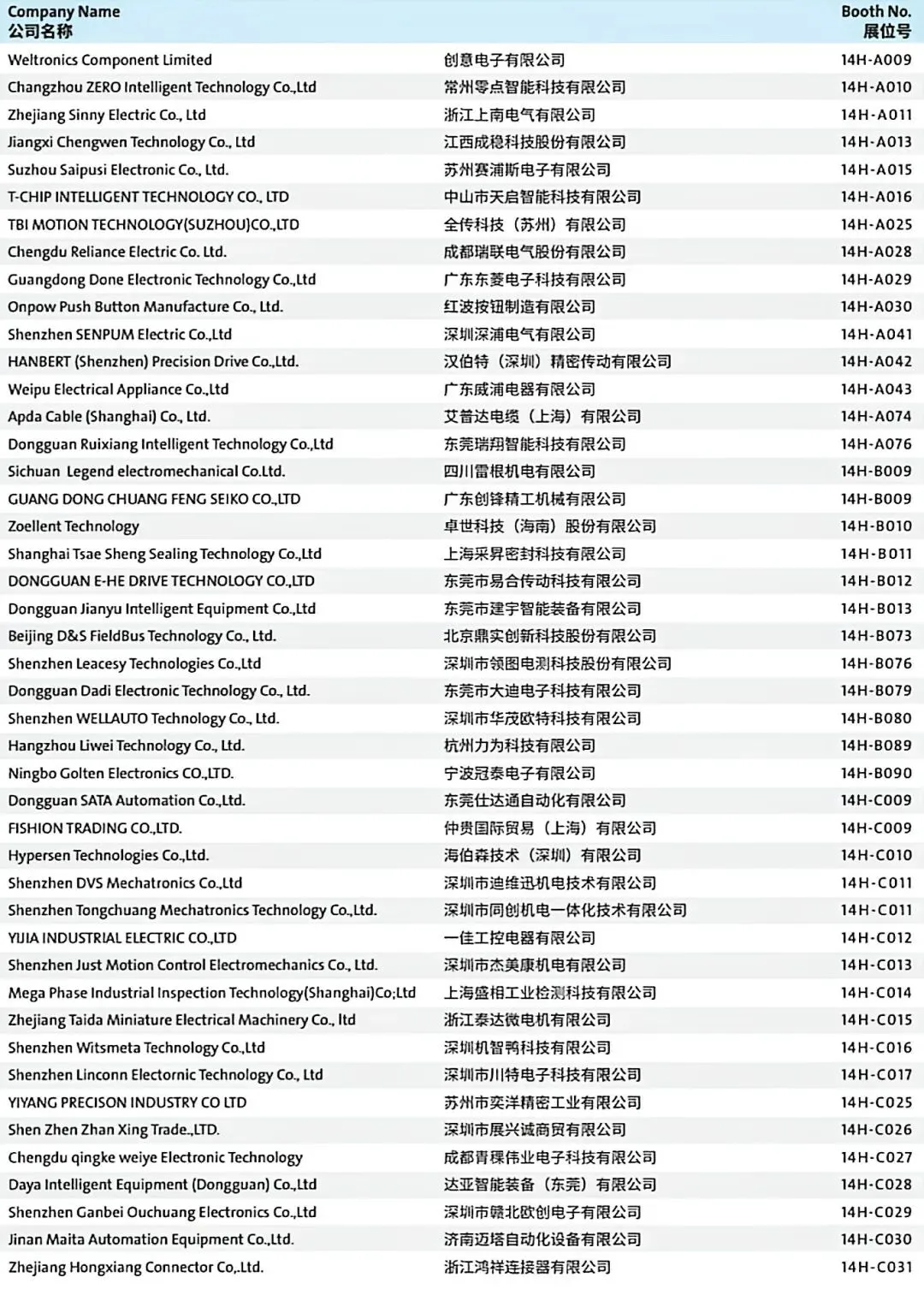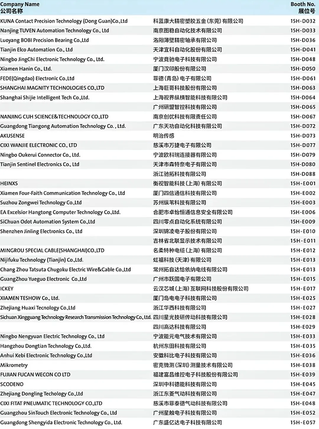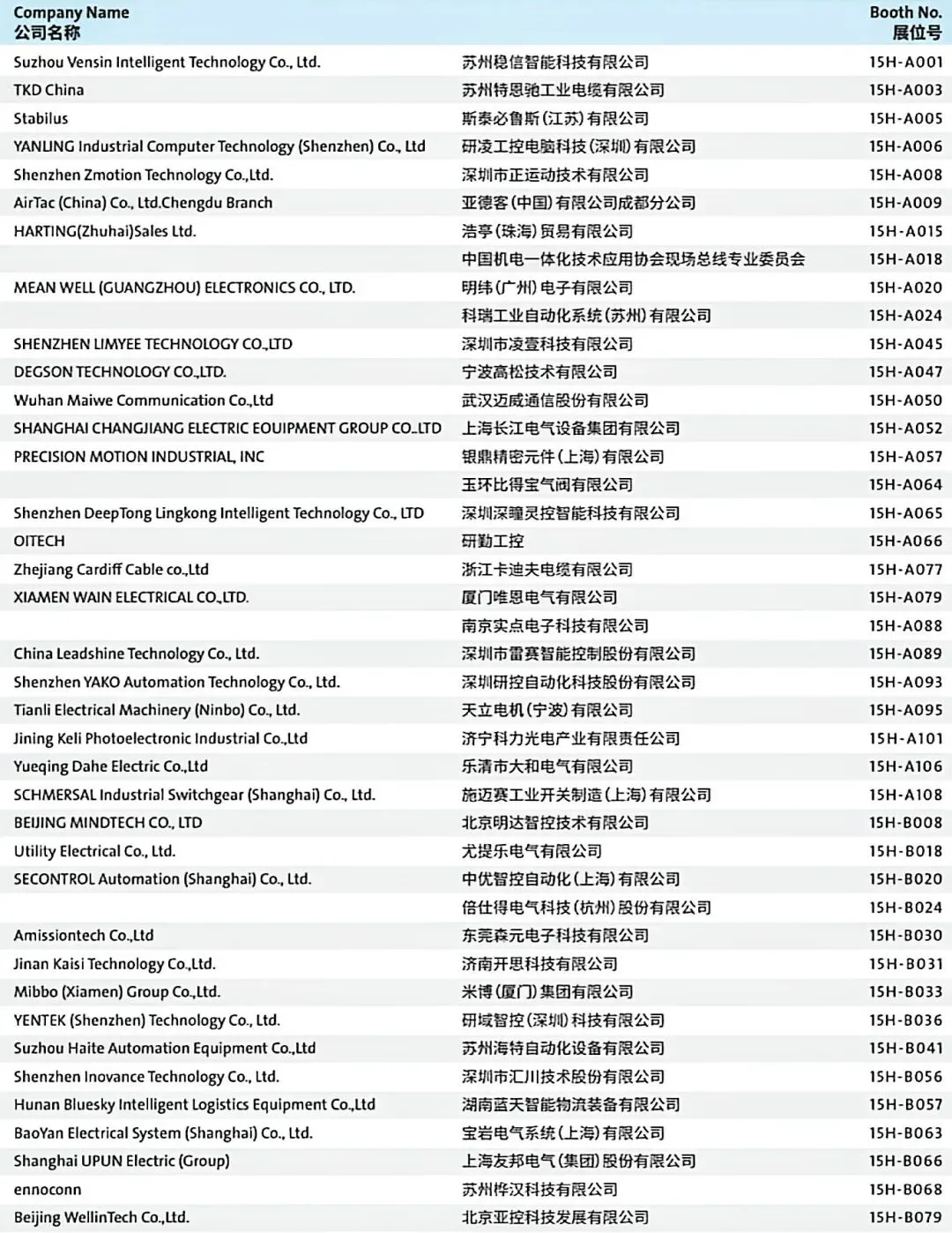 Exhibitor List
